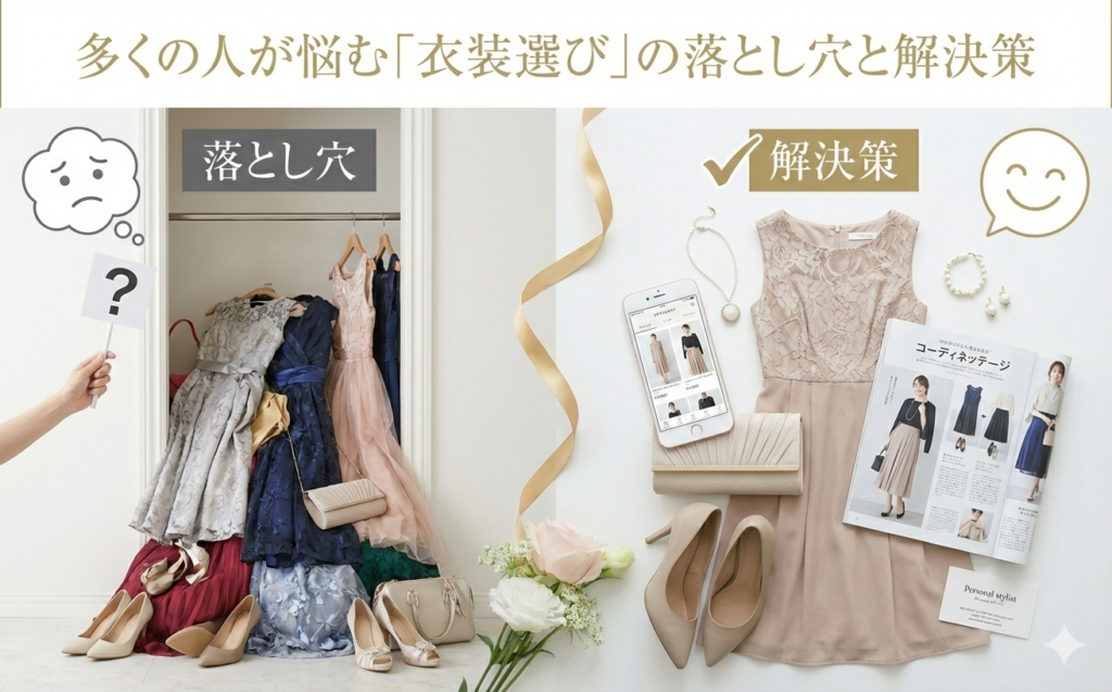 「数年前に買った高価なドレスがあるから大丈夫」と思っていても、実際に着てみるとファスナーが上がらなかったり、デザインが古臭く感じたりすることはよくあります。体型は年齢とともに変化し、ファッションのトレンドも刻々と移り変わります。